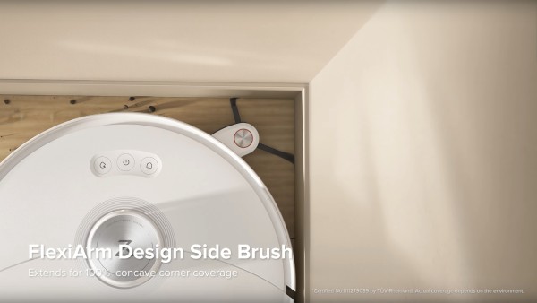 Ce nouveau poids lourd de Roborock est un concentré de fonctionnalités. Parmi les plus remarquables, on peut citer, pêle-mêle, une brosse latérale extensible (FlexiArm, pour aspirer efficacement les coins et bordures), une serpillère rotative (en plus de la lingette vibrante) pour laver le long des murs, un distributeur automatique de produit de nettoyage, etc. L'aspiration atteint quant à elle 10000 Pa.